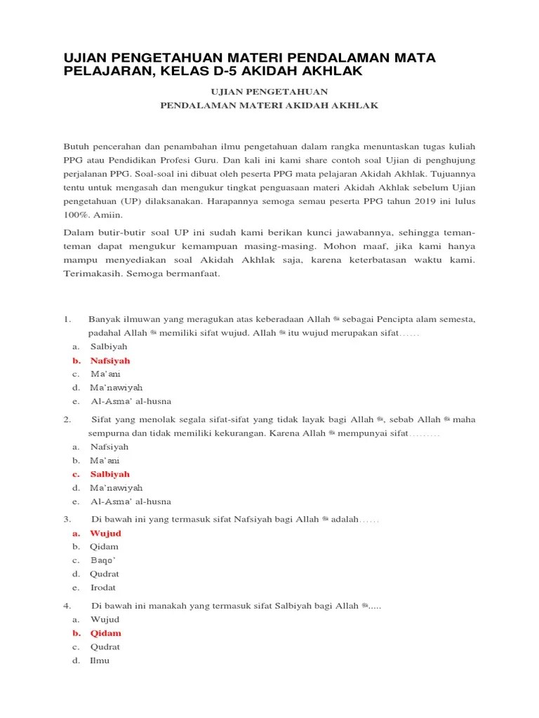 Berikut merupakan 25 contoh soal up ppg guru pai lengkap dengan kunci jawabannya. Mungkin demikian saja contoh latihan soal pretest 100 + kunci jawaban ppg 2019, semoga informasi ini bisa bermanfaat untuk kita semua. Soal latihan pretest ppg untuk mengikuti sertifikasi guru, khususnya bagi guru kelas sd ini sebagai gambaran dan referensi pembelajaran sebelum . Orang tua memberi contoh pada anak . Berikut ini implementasi sila ke 5 dalam pendidikan sebagai upaya pencapaian tujuan tersebut adalah….